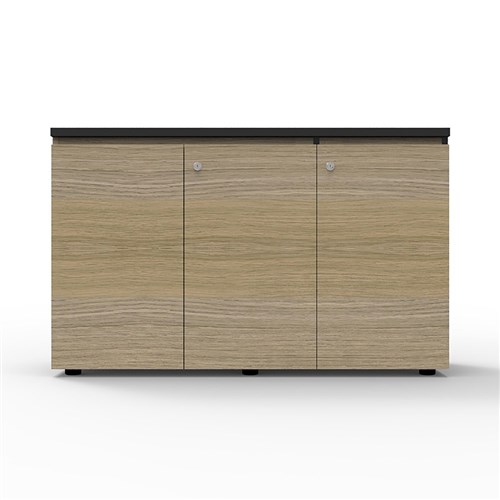 • Infinity Swing 3 Door Storage Cupboard 1200W x 450D x 730mmH Natural Oak with Black Edge
