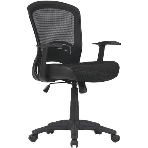 Intro Low Back Task Chair 1 Lever With Arms Black Mesh Back Black Fabric Seat