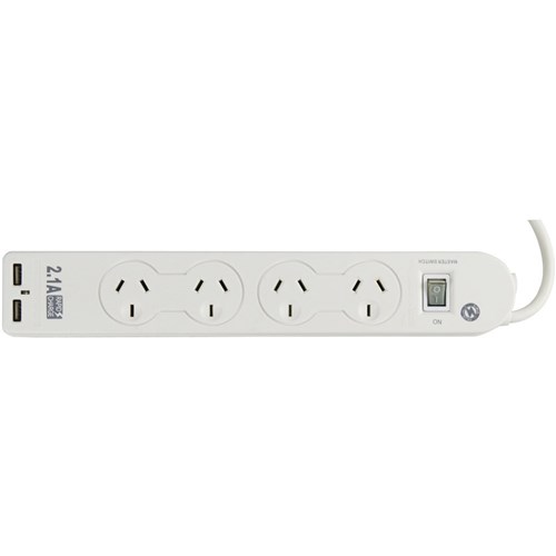 Italplast Powerboard 4 Outlet With 2 Usb Ports Surge Protected