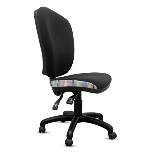 • Heavy duty commercial chair with 3 lever mechanism and ratchet back height adjustment.