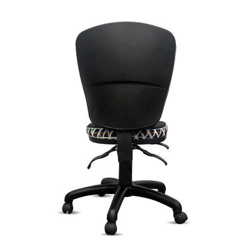 • A unique commercial fabrics designed by Paulina Puruntatameri (Indigenous Artist) combined with K2 Black Fabric to upholster the chair.