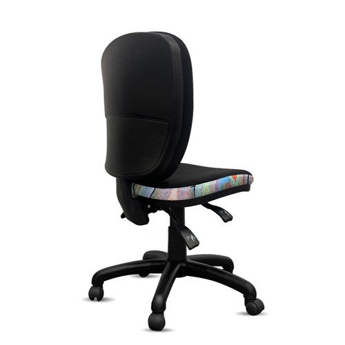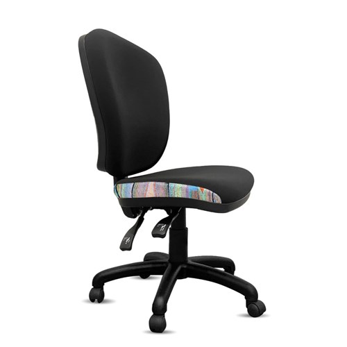 • Heavy duty commercial chair with 3 lever mechanism and ratchet back height adjustment.