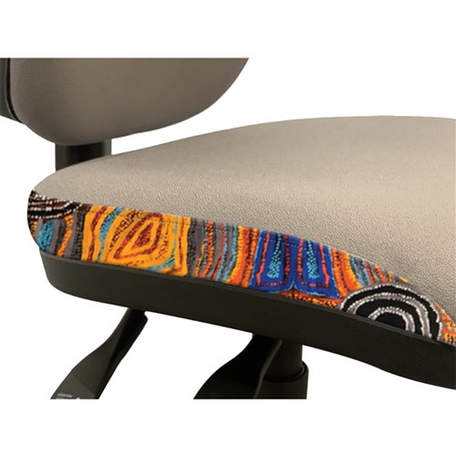 • A unique commercial fabrics designed by Mary Napangardi Brown (Indigenous artist) combined with K2 Mist Grey Fabric to upholster the chair.