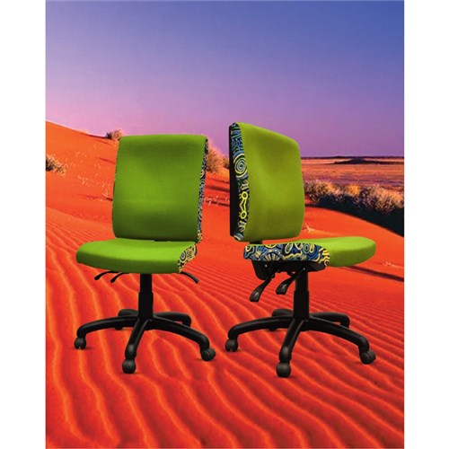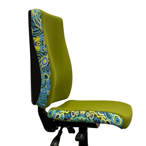 • A unique commercial fabrics designed by Cedric Varcoe (Indigenous artist) combined with K2 Eucalyptus Green Fabric to upholster the chair.
