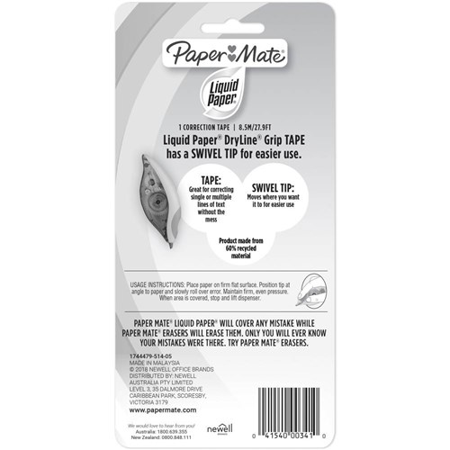Liquid Paper Correction Tape Dryline Grip 5mmx8.5m