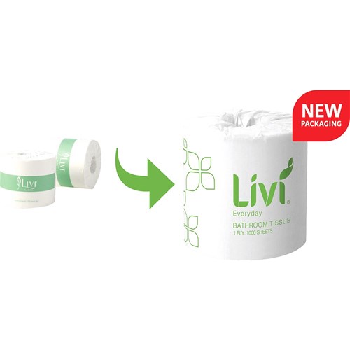 Livi Basics Toilet Paper Rolls 1 ply 1000 Sheets Box of 48