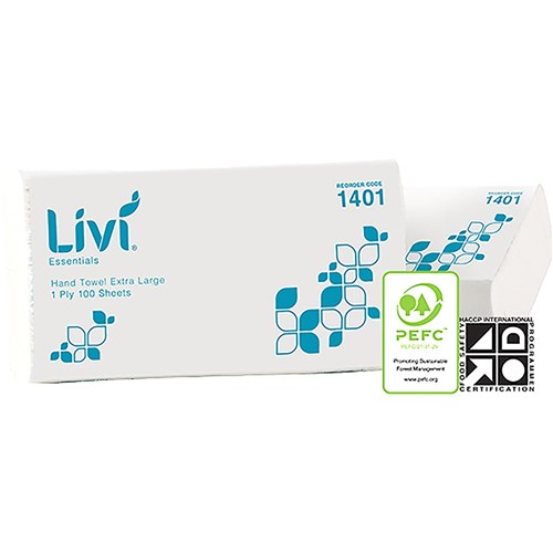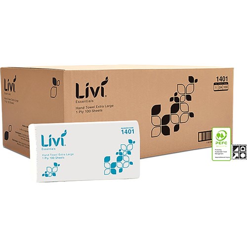 Livi Essentials Hand Towel Extra Large 1 Ply 100 Sheets Carton of 24