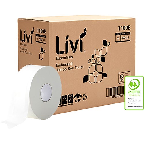 Livi Essentials Toilet Paper 2 Ply Jumbo Roll 300m Box of 8