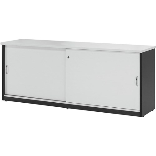 Logan Sliding Door Credenza 1800W x 450D x 730mmH White and Ironstone
