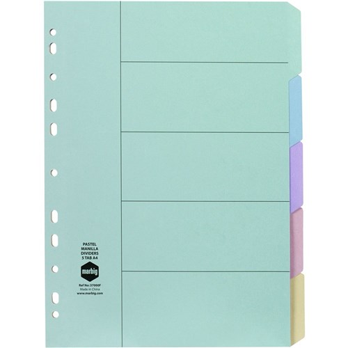 Marbig Manilla Divider A4 5 Tab Pastel Colours