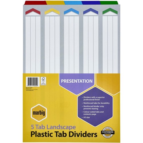 Marbig Plastic Divider A3 Reinforced 5 Tab Landscape Multi Colour