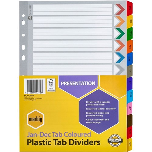 Marbig Plastic Divider A4 Reinforced Jan-Dec Tab Multi Colour