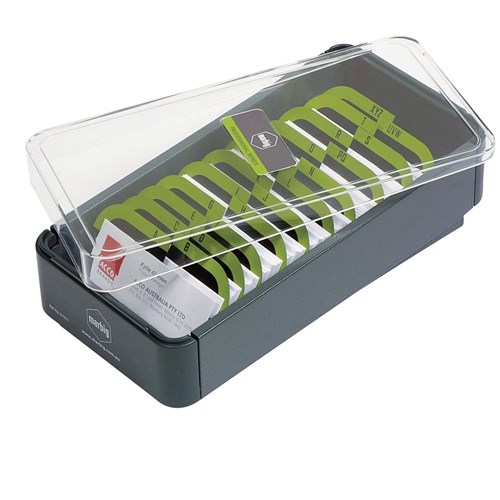 Marbig Pro Series Business Card Filing Box 400 Capacity Grey & Lime