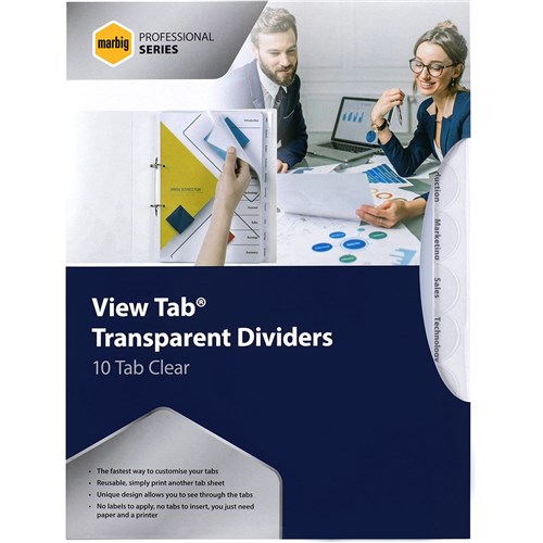 Marbig Professional Series A4 10 View Tab Dividers Transparent Clear