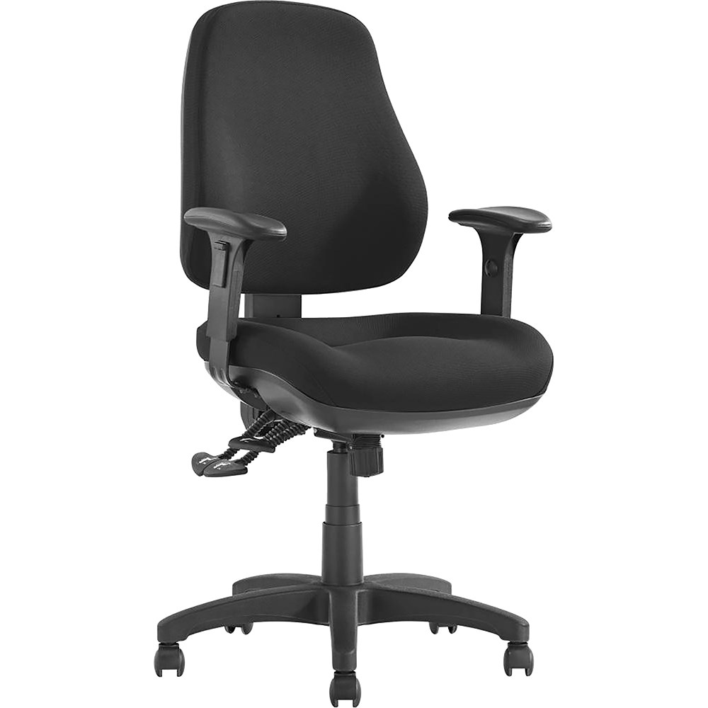 Newton High Back Task Chair 3 Lever With Arms Moulded Foam Seat and Back in Black Fabric