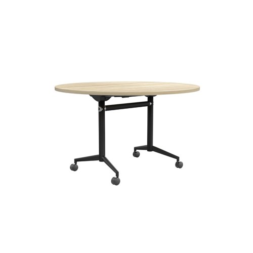 OLG Uni Round Flip Top Table 1200mm Diameter New Oak Top Black Frame