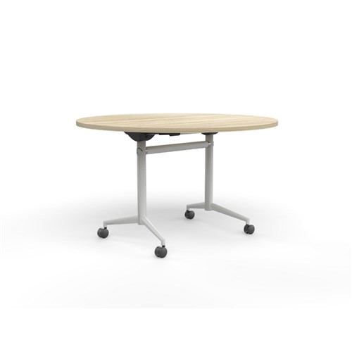 OLG Uni Round Flip Top Table 1200mm Diameter New Oak Top White Frame