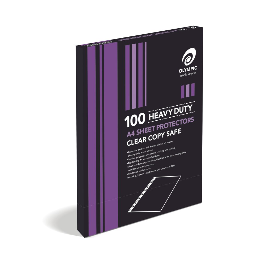 Olympic Heavy Duty Sheet Protectors A4 Clear 60mic Box of 100