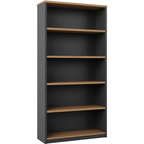 • OM Premier Bookcase 900W x 320D x 1800mmH Regal Walnut and Charcoal