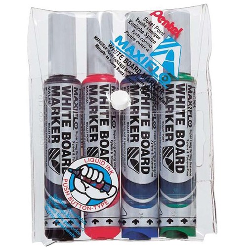 Pentel MWL5 Maxiflo Whiteboard Marker Bullet 2.1mm Pump Assorted Wallet of 4