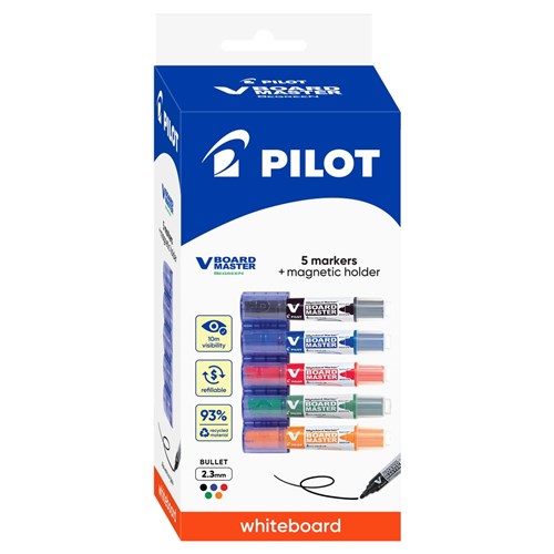Pilot Begreen V Board Master Whiteboard Marker Bullet Tip pk5 assorted & Magnet holder