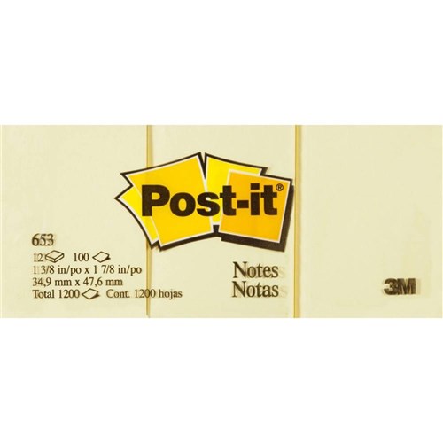Post-It 653 Notes Original 36x48mm Yellow Pad 100 Sheets Pack of 12