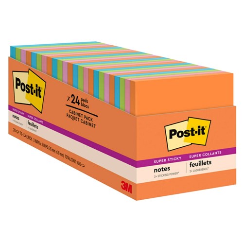 Post-It 654-24SSAU-CP Super Sticky Notes 76x76mm Cabinet Energy Boost Pack of 24