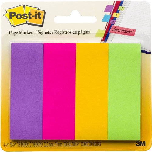 Post-It 671-4AU Page Markers 22x73mm Jaipur Assorted 50 Sheet Pad Pack of 4