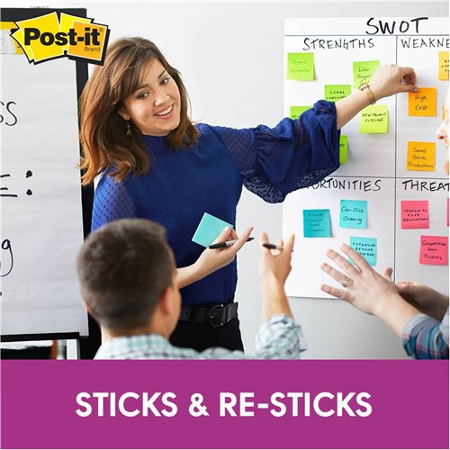 • Super Sticky Post-it® adhesive ensures that notes stick practically anywhere such as computer monitors, filing cabinets & furniture, and remain as easily removable as original Post-it® Notes.