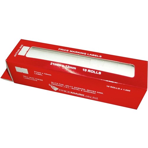 Pricing Gun Labels White Permanent 21x12mm Pack of 10 524658