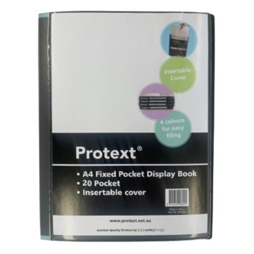 Protext Fixed Display Book A4 20 Pocket Insertable Cover And Spine Black