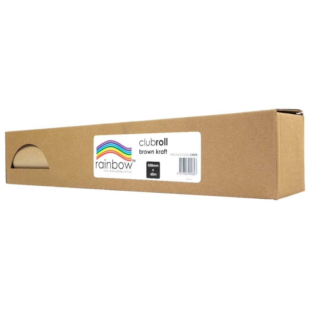 Rainbow Clubroll Kraft Paper Roll 500mm x 60m 70gsm Natural