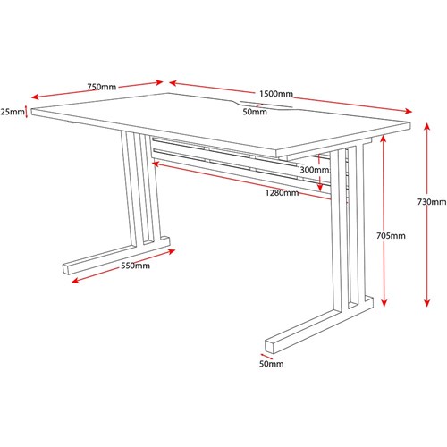 Rapid C Leg Desk 1500W x 750D x 730mmH Natural Oak