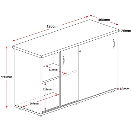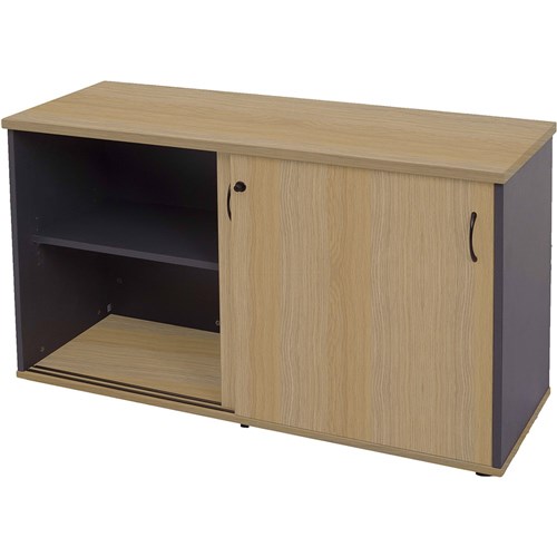 Rapid Credenza Sliding Door 1200W x 450D x 730mmH Natural Oak and Ironstone