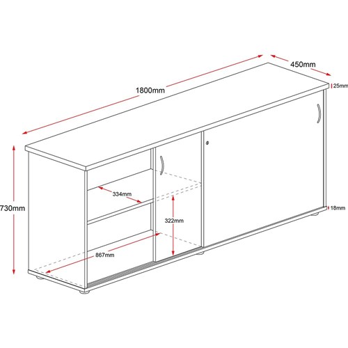 Rapid Credenza Sliding Door 1800W x 450D x 730mmH Natural Oak and Ironstone