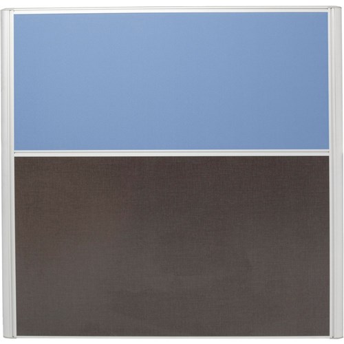 Rapid Desk Divider Screen 1250Hx1800mmW Silver Frame Blue Fabric Charcoal Base