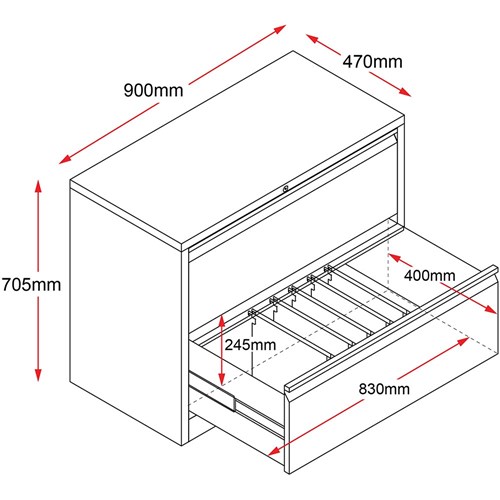 • Rapid GO Lateral Filing Cabinet 2 Drawer 705H x 900W x 473mmD Black