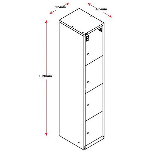 Rapid Go Locker 4 Door 1830H x 305W x 455mmD White