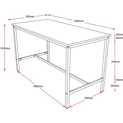Rapid High Bar Table 1050H x 900W x 1800mmD Beech Top Black Frame