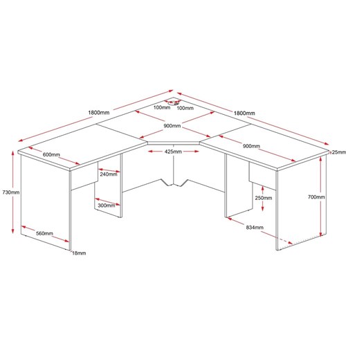 Rapid Worker 3 Piece Corner Workstation 1800W x 1800W x 600D Cherry and Ironstone