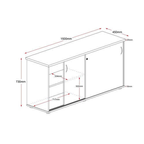 Rapid Worker Credenza Sliding Doors 1500W x 450D Cherry and Ironstone