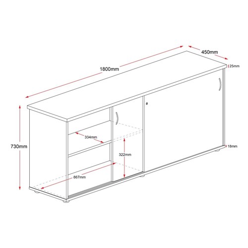 Rapid Worker Credenza Sliding Doors 1800W x 450D Cherry and Ironstone