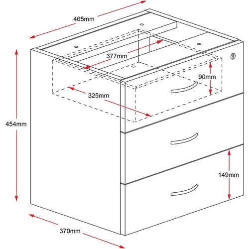 Rapid Worker Fixed Pedestal 3 Drawer 454Hx465Wx370mmD Ironstone