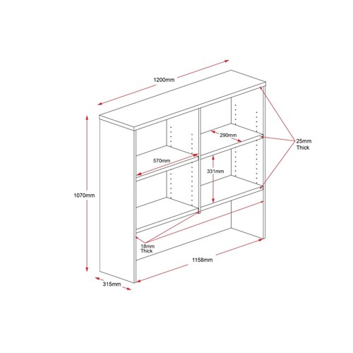 Rapid Worker Hutch 1200W x 315D x 1070mmH 4 Shelves Cherry & Ironstone