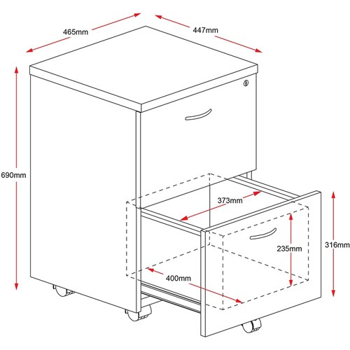 Rapid Worker Mobile Pedestal 2 File Drawer 465W x 447D x 699mmH Ironstone