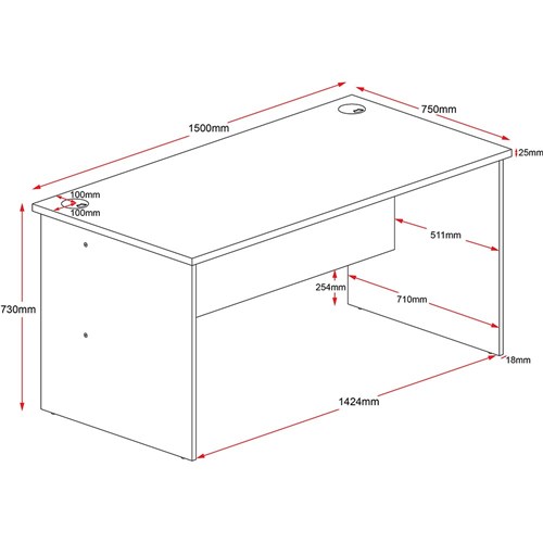 Rapid Worker Open Desk 1500W x 750D x 730mmH Natural Oak & Ironstone