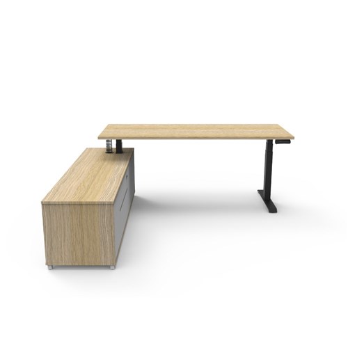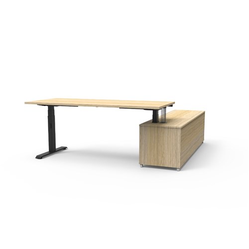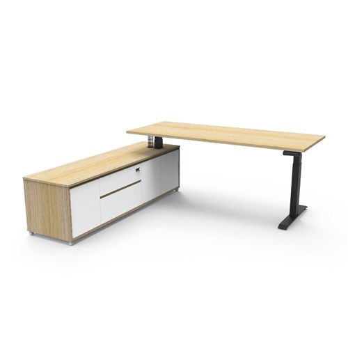 Rapidline Boost+ Executive Desk + LHS Cabinet 2020W x 1936D x 620-1270mmH Oak/Black