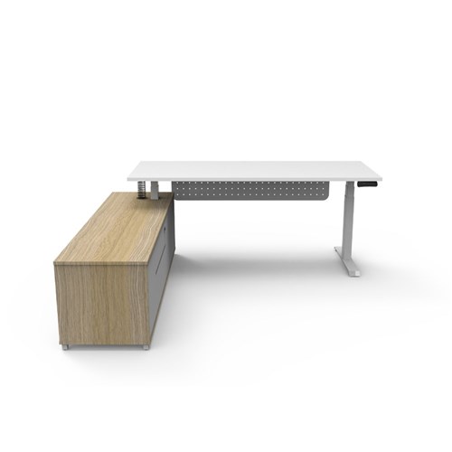 Rapidline Boost+ Executive Desk + LHS Cabinet+Panel 2020W x 1936D x 620-1270mmH Wht/Wht
