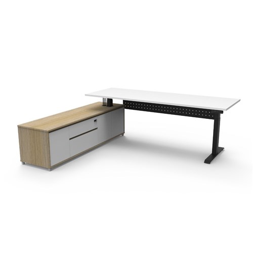 Rapidline Boost+ Executive Desk + LHS Cabinet+Panel 2270W x 1936D x 620-1270mmH Wht/Blk