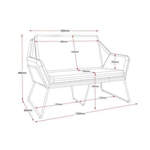 Rapidline Cardinal Lounge Chair 2 Seater 1335W x 690D x 890mmH Charcoal Fabric